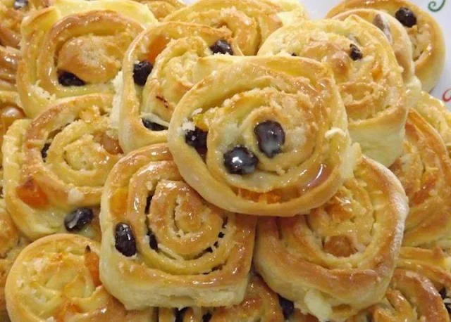 Divida a massa em 3 partes para facilitar. Abra a massa com um rolo (não deixar muito fina). Espalhe o recheio (já frio). Nesse momento, você pode optar fazer somente com esse recheio ou salpicar as frutas. Enrole como rocambole e corte fatias com 2 cm aproximadamente.