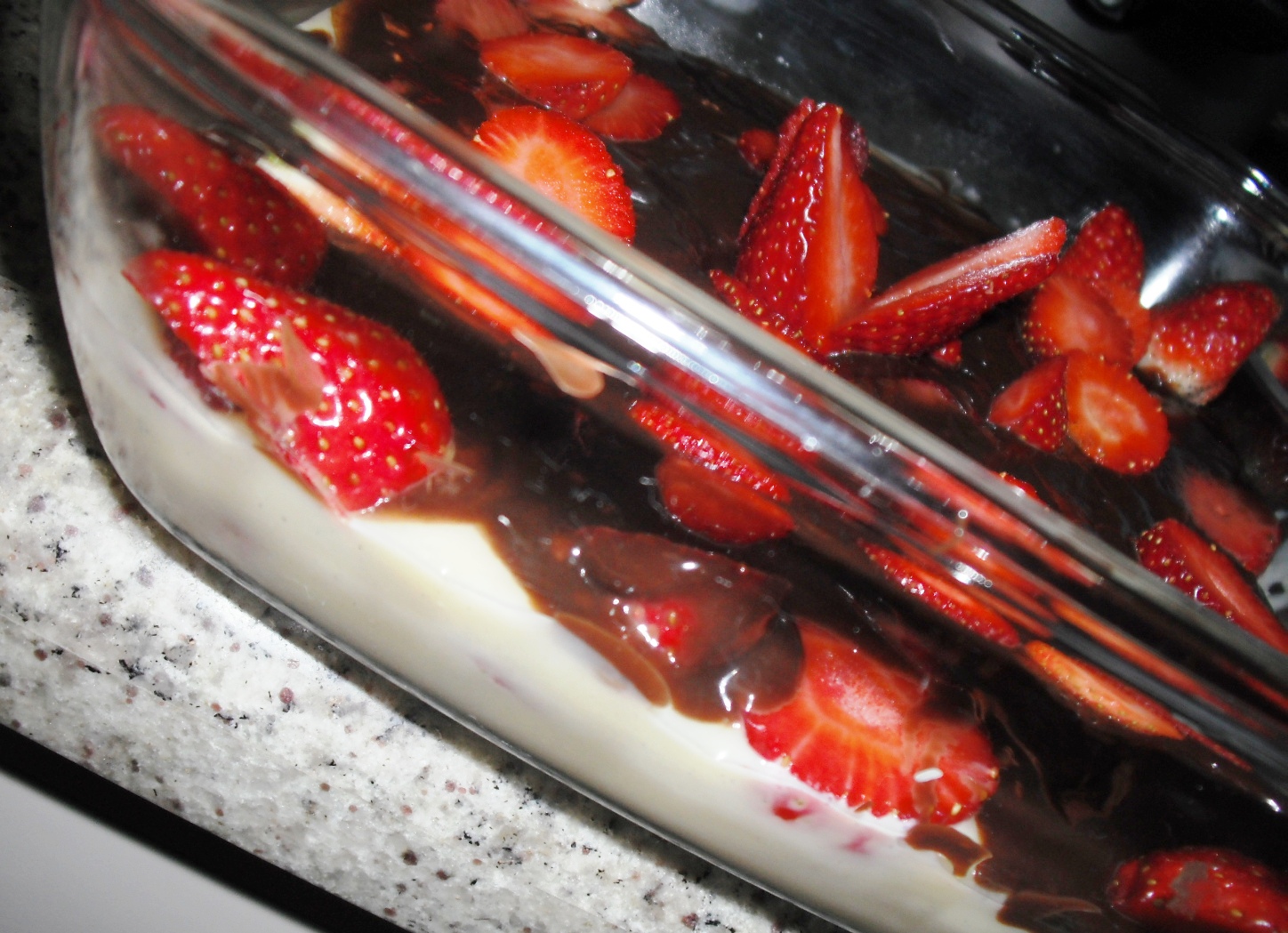 a torta da geladeira, coloque a gelatina de maracujá sobre a torta já gelada,