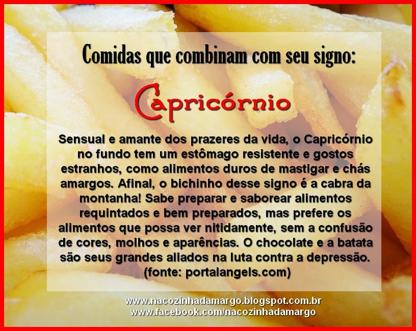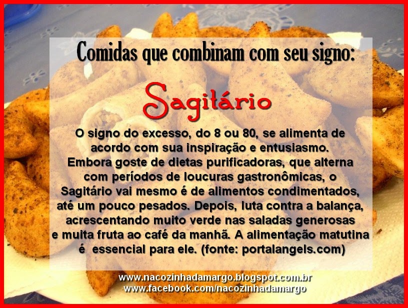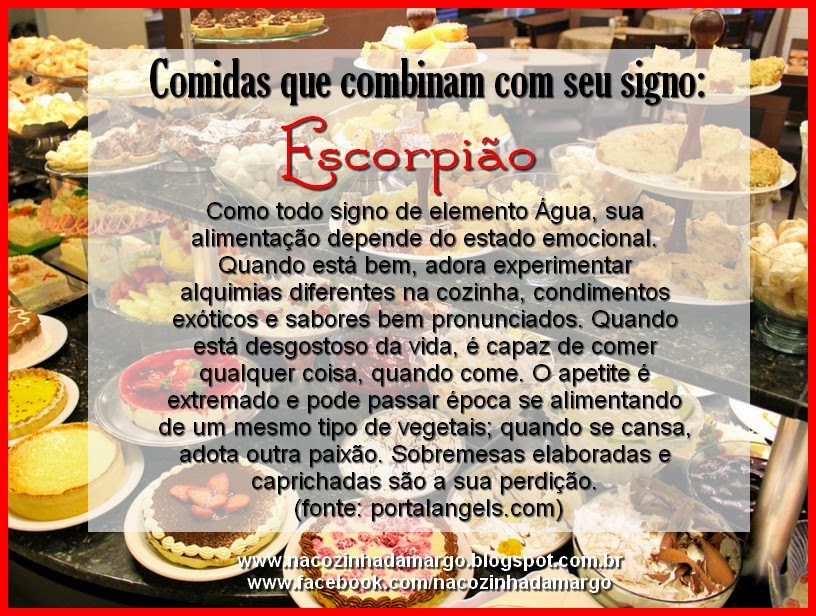 Um dia desses aí, comecei a associar minha personalidade com minhas comidas prediletas, só por curiosidade e divertimento. E achei semelhanças bem interessantes... Acredite ou não, o seu signo pode realmente influenciar os gostos, desgostos e preferências por esse ou aquele alimento. Aprender mais sobre os signos e o que eles significam sobre uma pessoa pode também ajudar a entender seus hábitos alimentares. Leia o que diz o seu signo: