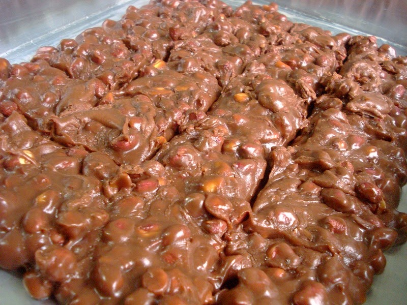 Depois de desligar o fogo bata mais um pouco. Despeje em uma pedra mármore untada com margarina. Corte ainda morno os pedacinhos.