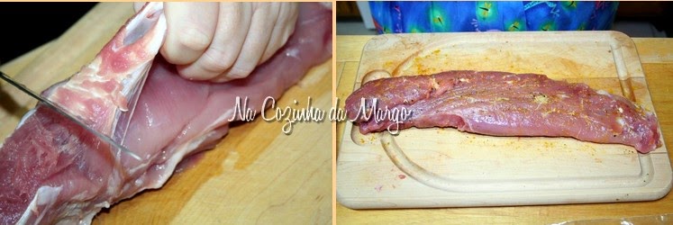 Na véspera, lave o lombo, escorra e faça furos com uma faca e reserve.
