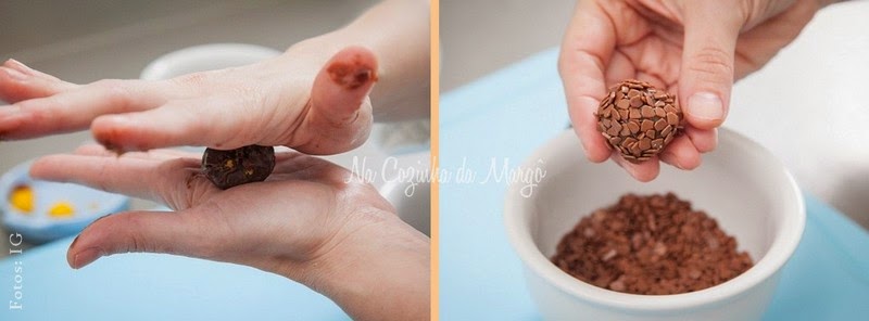 Acerte os contornos do brigadeiro, boleando o doce de novo. Passe as bolinhas no granulado e ponha nas forminhas.